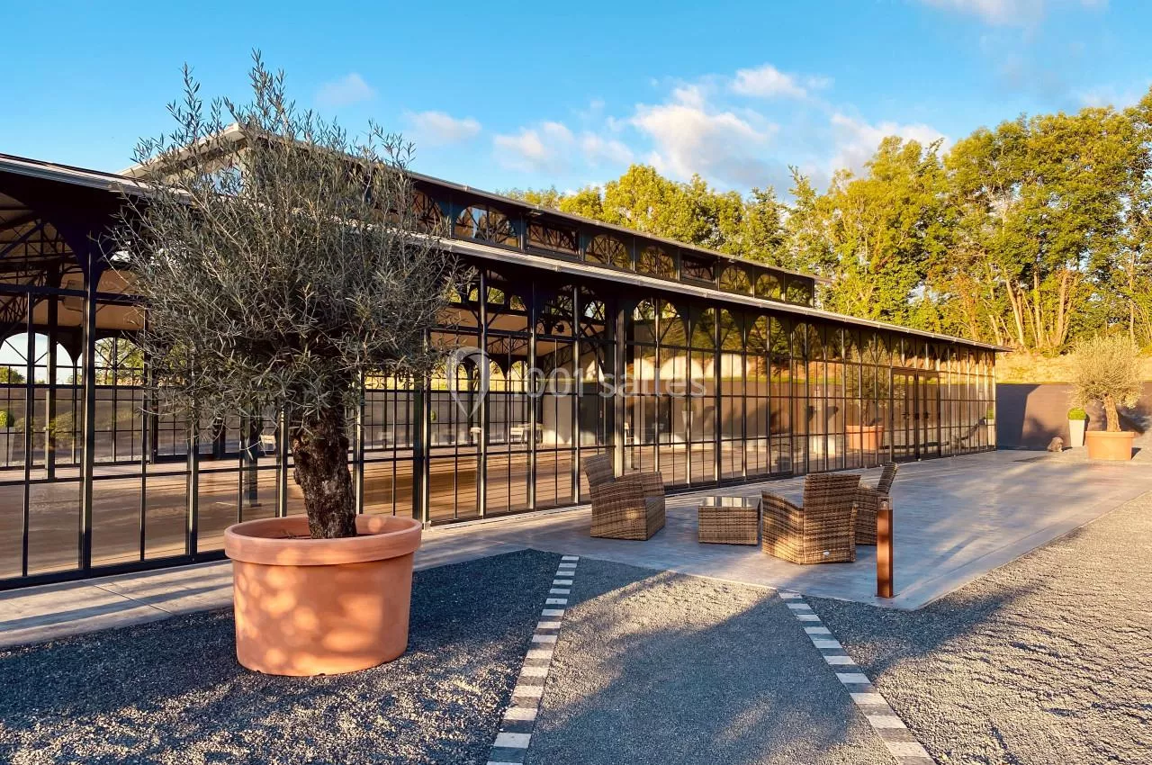 L'Orangerie du Château de la Roque est un espace de 400m² avec une terrasse de 100m², offrant un éclairage intérieur personnalisable et un espace traiteur.