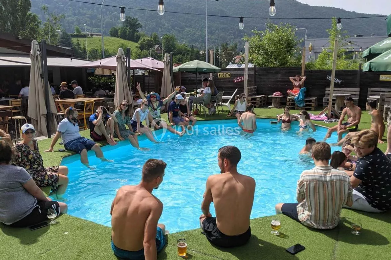 L'Amnésie Sevrier propose plusieurs espaces uniques : une grande terrasse avec piscine, la salle principale, la salle 'Chalet' et la salle 'Folle Boxe'. Chacun offre une ambiance distincte pour répondre à vos besoins.