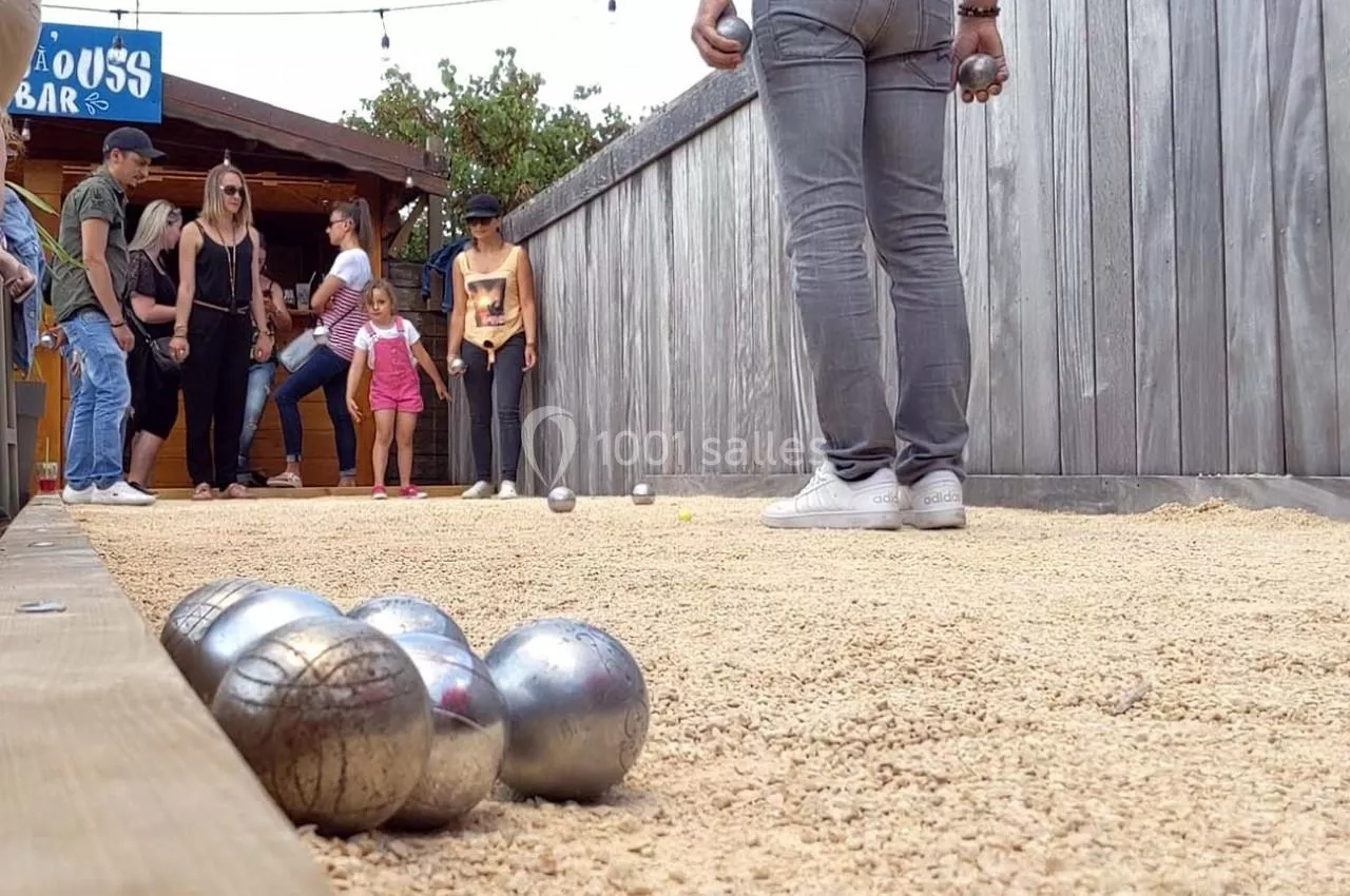 À l'intérieur une des salles est équipée de flipper, baby foot et palet.