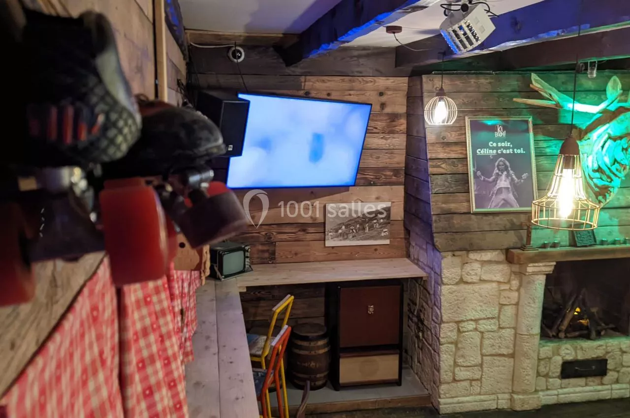 En intérieur, 3 espaces (salle principale, salle chalet et salle folle boxe) à la décoration unique et originale !