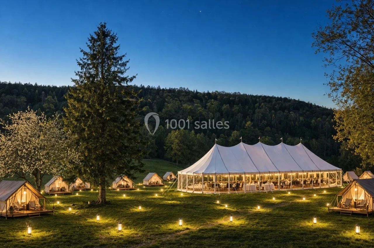 Des tentes de luxe de type safari lodges pour l'hébergement de tous vos convives sans exception, sur option.