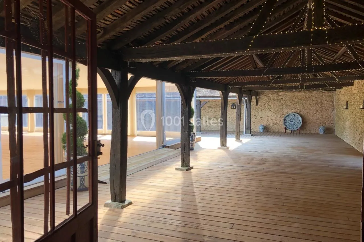 > L'Espace Réception d'une superficie de 550 m² qui est situé entre cour et jard...in et comprend un ensemble de trois grands salons ( 160 m² ) communiquant avec une cour intérieure (340 m²) entièrement aménagée en terrasse bois, chapiteau style orangerie, patio .