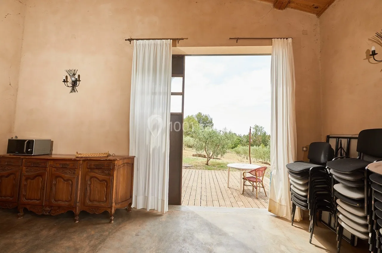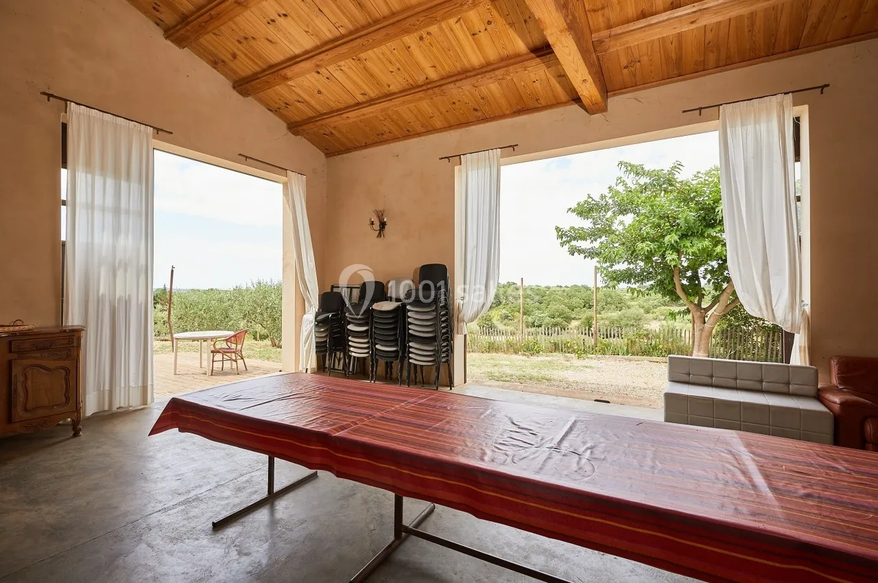 Situé au cœur d'une oliveraie typique des paysages méditerranéens, le Mas Nicolas vous accueille dans son écran de verdure. Mas Agricole en polyculture biologique (élevage de poules, olives, plantes aromatiques et médicinale) cet espace agricole et a...ssociatif accueille différents types de public depuis près de quatre ans. Profitez de sa terrasse semi ombragée, ses espaces extérieurs, de sa salle de 80m², de la cuisine équipée, du parking aménagé ainsi que de ses 6 hectares verdoyants. Nos équipes sont habituées à vous accompagner dans la prise en main de l'espace pour des moments de convivialité inoubliables. Ce sont des producteurs bio qui vous font partager leur savoir en matière de farines aux blés anciens et d’olives, des séjours de vacances pour les enfants et les jeunes, des événements culturels pour célébrer les quatre saisons dans un cadre d’exception où se retrouver en famille, entre amis à l’occasion des grandes étapes de votre vie : anniversaires, baptêmes et mariages !