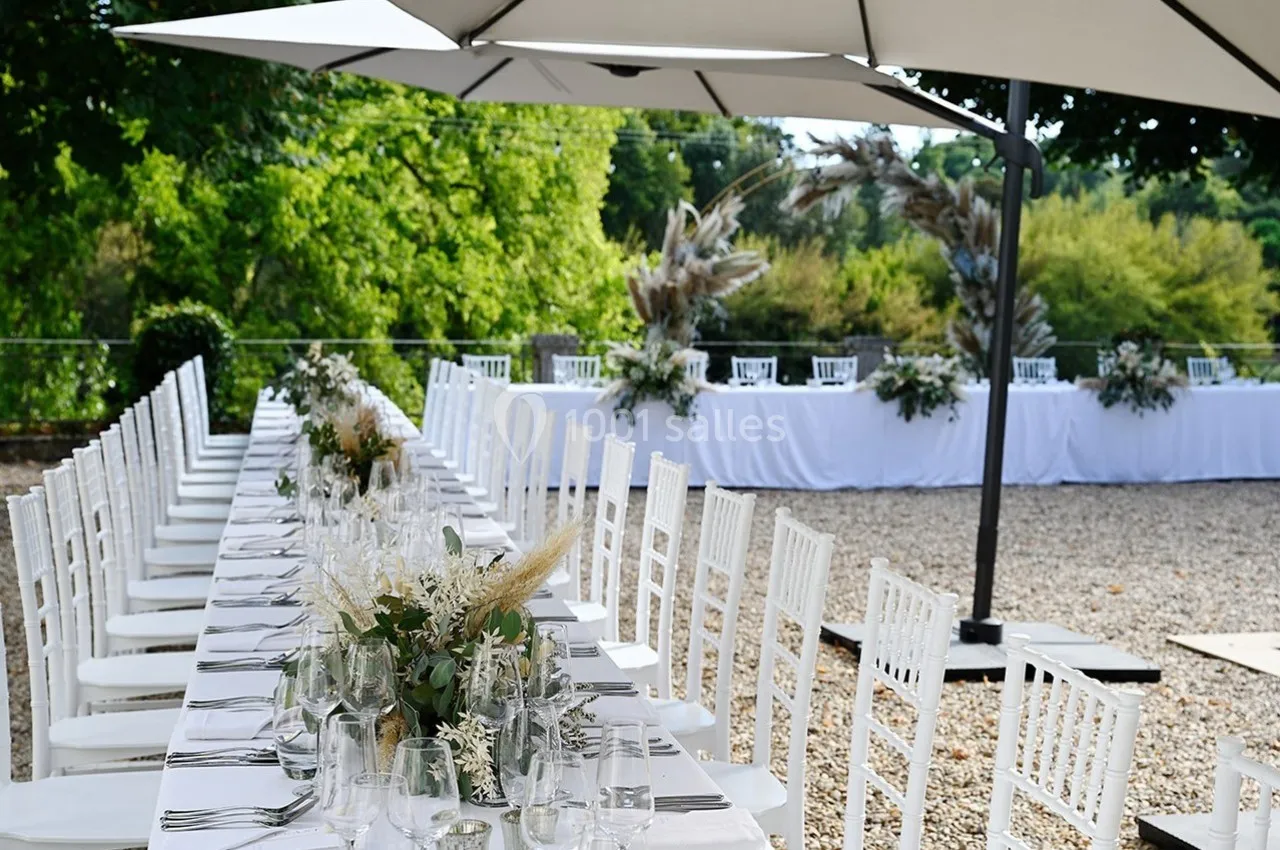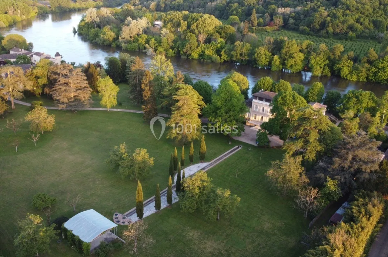 Le parc paysager, la terrasse spacieuse et la vue imprenable sur la Dordogne font du Château Destinée un cadre exceptionnel pour des événements en plein air.