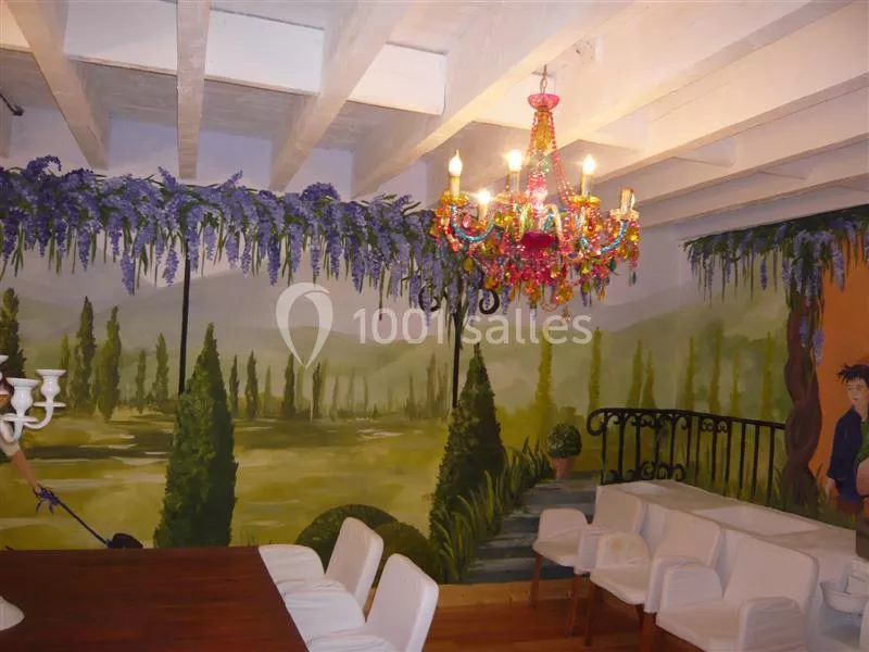 la salle des glycines reçoit 180 personnes en cocktail et 140 en banquet.