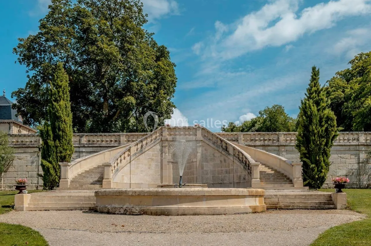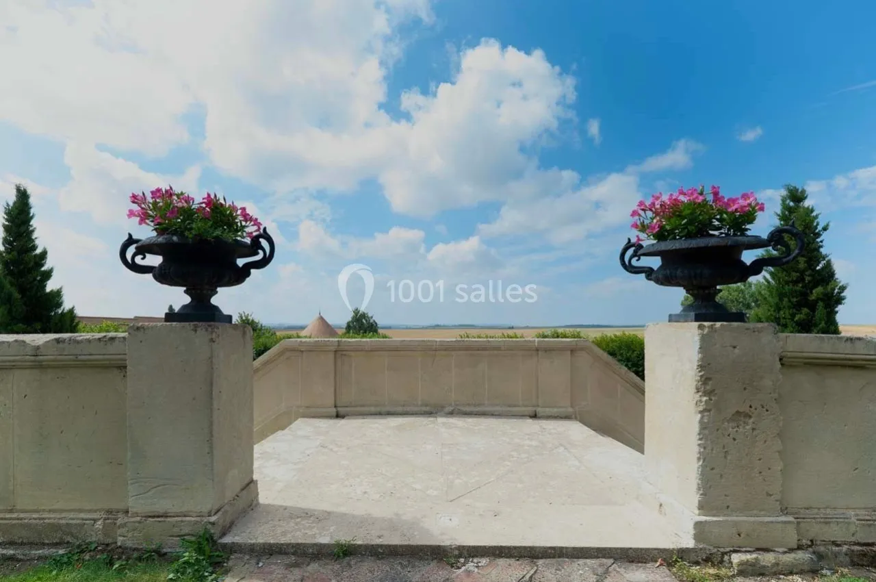 Vous pourrez également accéder à la terrasse du Château depuis un escalier monumental en forme de fer à cheval. La terrasse vous offrira une vue panoramique sur la propriété ainsi que sur les plaines alentours.