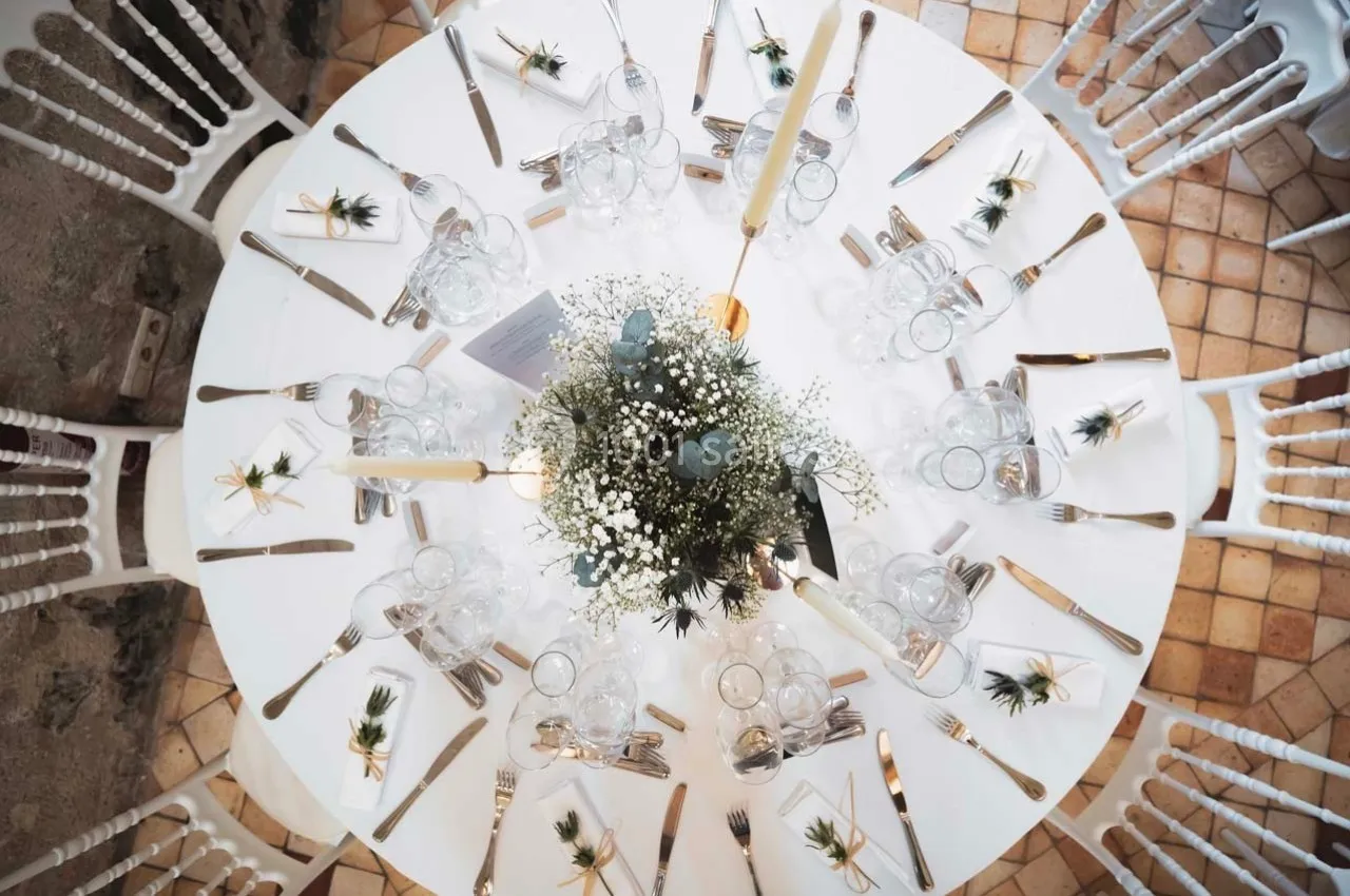 La formule clé en main comprend la décoration florale, le traiteur, les boissons softs à volonté, le personnel de service, ainsi que le mobilier et la vaisselle.