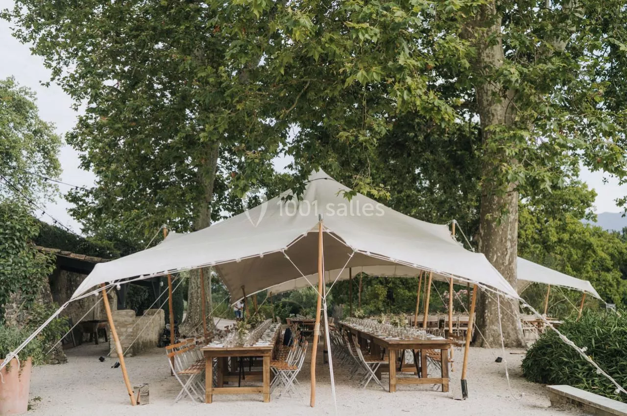 - La grande terrasse ( 350m2) et sa tente nomade bénéficient de l'ombrage des platanes centenaire, pour vos cocktails et vos dîners en extérieur.