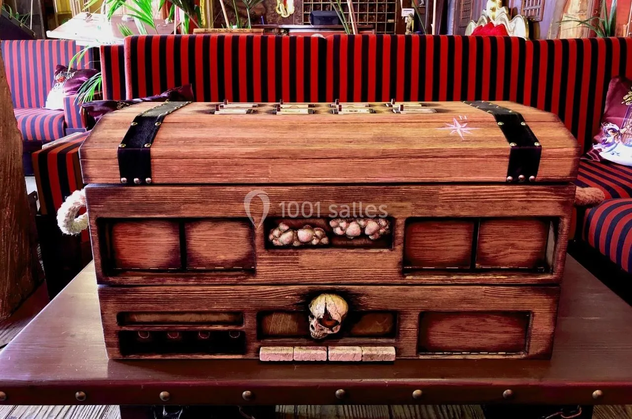 Les hébergements à l'Hôtel Cap Pirate se distinguent par leur décor unique, alliant art baroque et contemporain, pour une immersion totale dans l'univers de la piraterie.