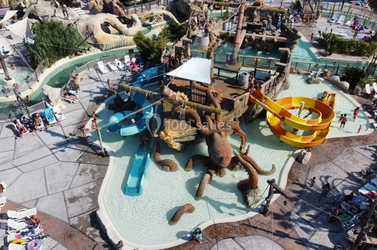 Le complexe Pirates World, situé au Cap d'Agde, à seulement 800 mètres de la plage des Battues, comprend un camping, deux hôtels et un parc aquatique.