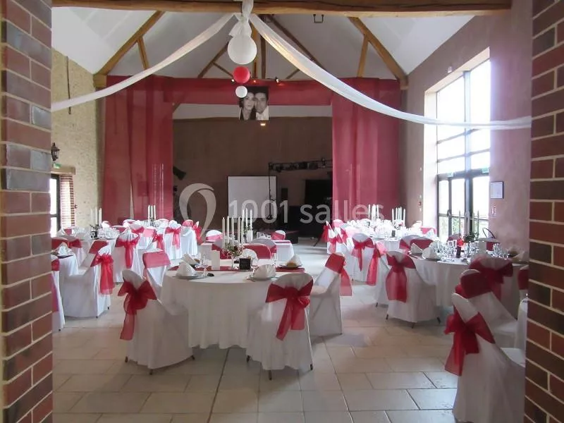 La configuration proposée plait énormément et il est conseillé de nous rendre visite pour découvrir la salle de plain pied, qui offre un bel espace sans séparation ni poteaux ! Tous les convives sont ainsi dans un même espace. La salle dispose d’un jardin clos, attenant permettant, entre autres, aux parents d’avoir toujours leurs enfants sous surveillance, dans la soirée.