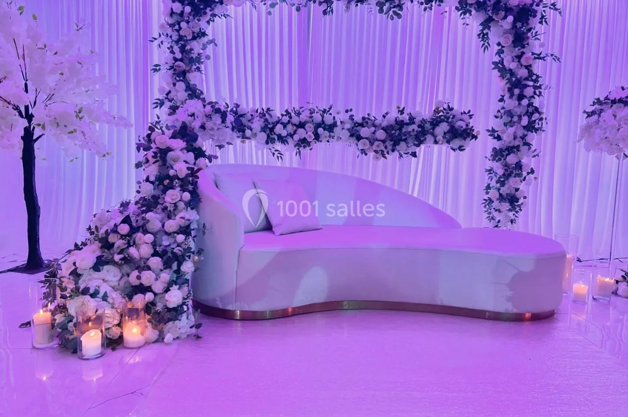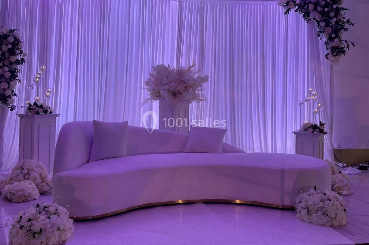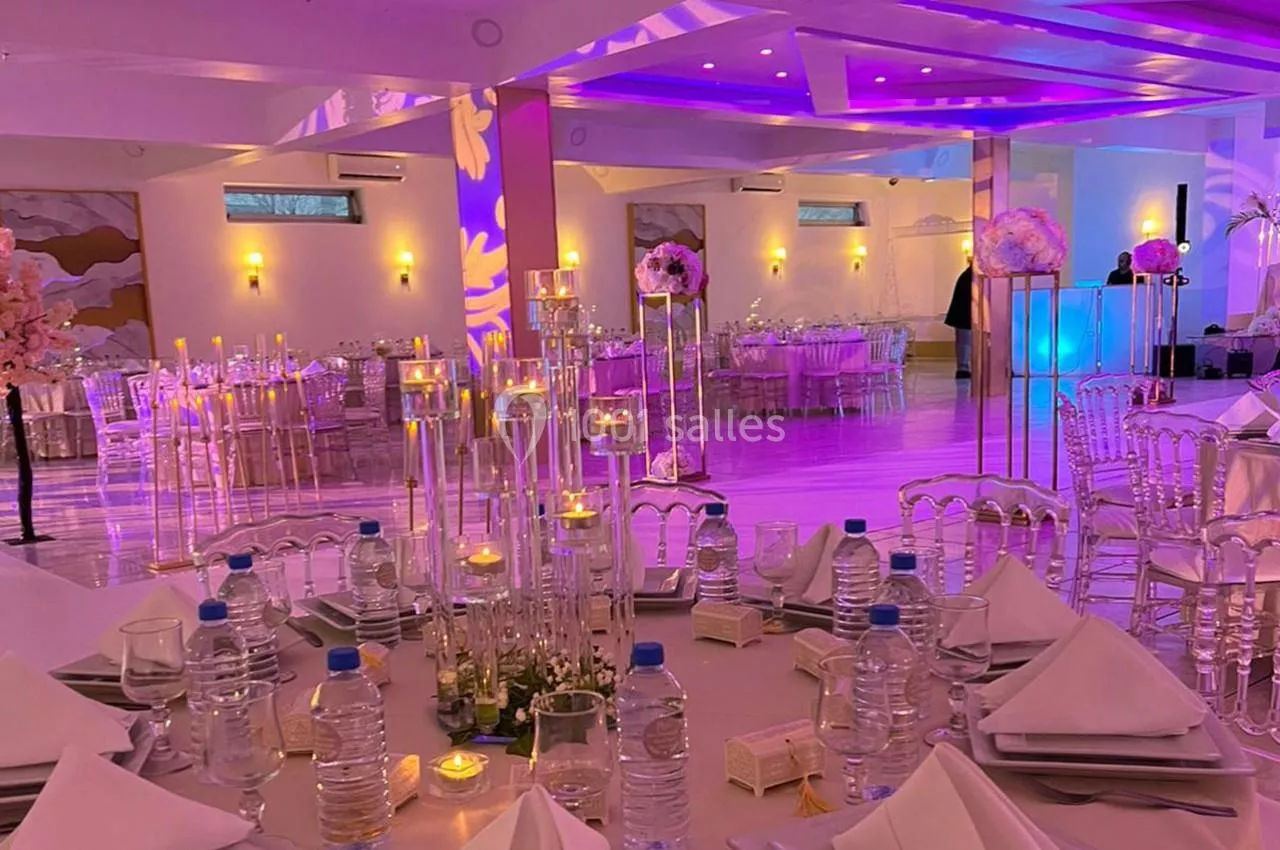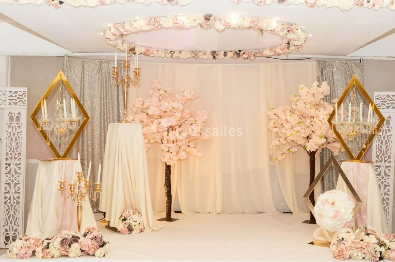 Notre salle dispose de deux espaces pour organiser l'évènement de vos rêves sur mesure. Un espace de célébration extérieur pour embellir vos cérémonies et vins d'honneur en plein air. Un espace réception de 400 personnes avec une piste de danse pour accueillir vos convives et partager vos moments de bonheur. Dans une atmosphère chic et raffinée, nous vous proposons un service décoration pour parfaire le rêve de votre vie. Nos chefs se mettent à votre service pour créer le menu adapté à vos envies.