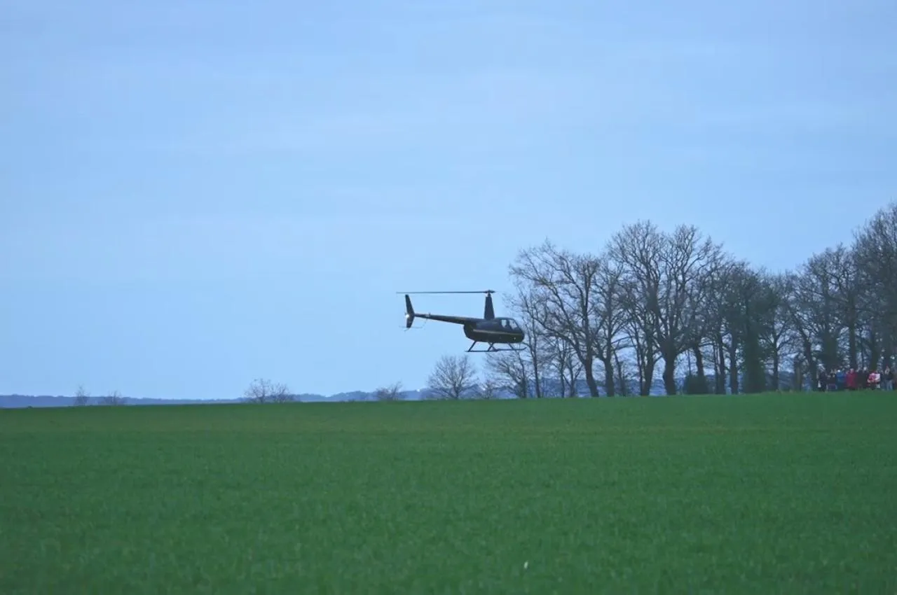 Arrivée en hélicoptère pour un événement surprise.