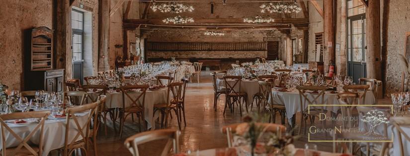 En ce qui concerne la salle de réception actuelle, c'est l'ensemble de granges, d'étables et d’écuries qui la compose, ce qui explique en partie la magnifique charpente d'époque qui vous impressionne dès votre entrée dans cette salle. Néanmoins, au fil des années et des partages, le Nanteux a subi des divisions. En ce qui concerne le Domaine du Grand Nanteux, 3 hectares d'espaces aménagés sont présents pour le confort des mariés et de leurs invités. Des endroits très différents pour le bonheur des photographes, des mariés et des invités qui s'y promènent. La roseraie, la petite forêt, la grande cour d'honneur, la balancelle, l'espace camping, etc.