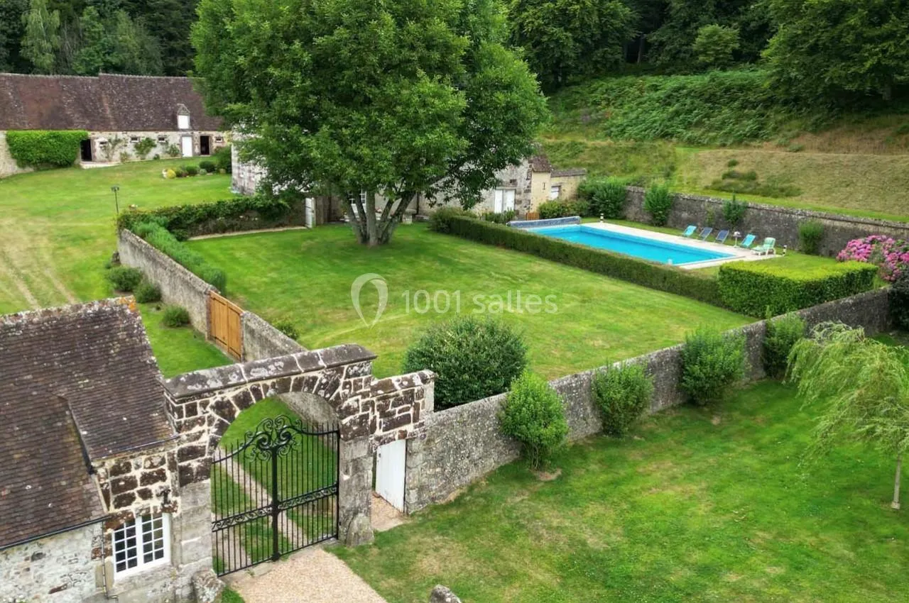 Parfaitement adapté pour de grands événements, ce lieu est situé à seulement 1h30 de Paris. Le manoir de Bellegarde dispose d'un grand jardin, d'une piscine, d'une grande salle pouvant accueillir 120 personnes avec tables et chaises, de sanitaires, de douches, de cuisines et d'un parking. Le propriétaire veille à la parfaite organisation de la réception et il est essentiel de définir les attentes avec lui au préalable. Ce lieu a contribué grandement à la réussite de notre événement de 25 ans.