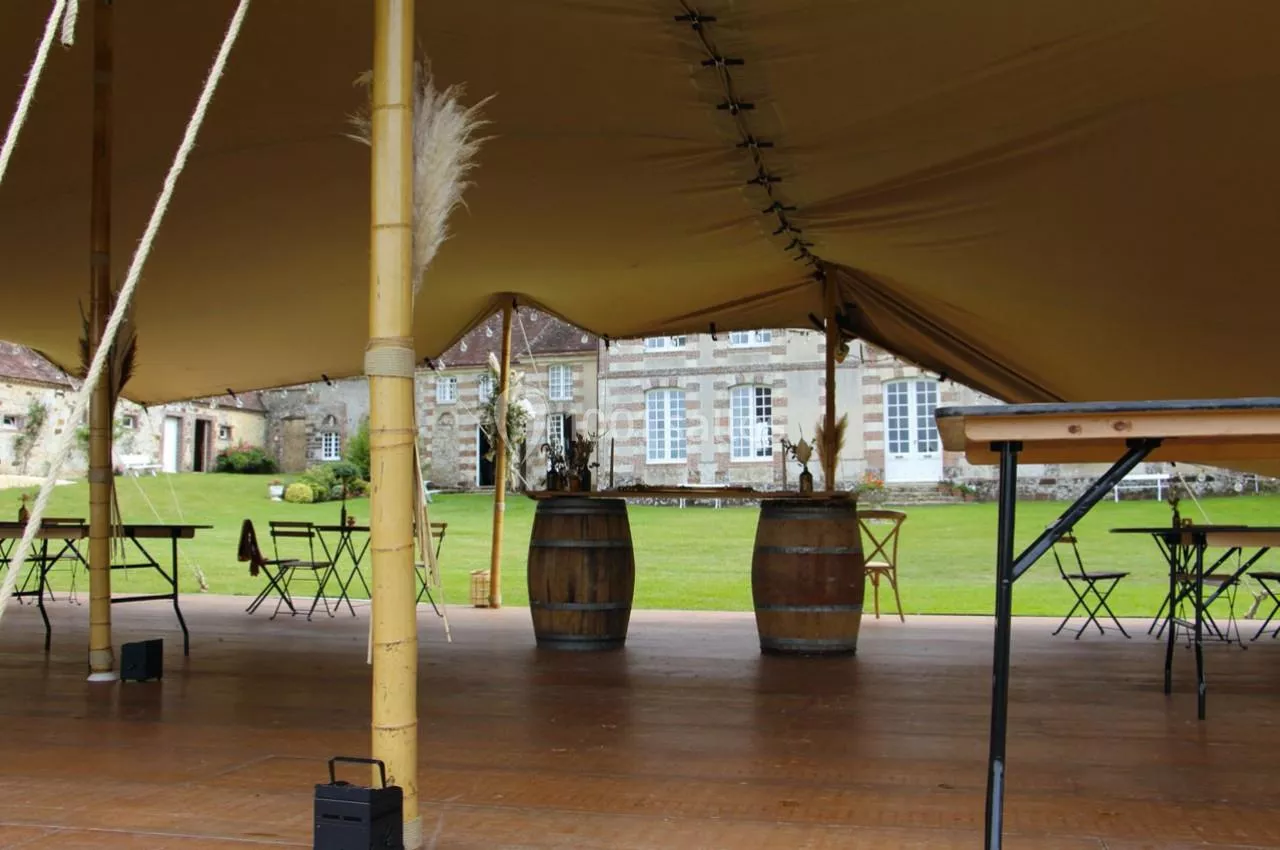 Pour des réceptions plus grandes, jusqu’à 300 personnes et plus, une tente peut être louée et facilement installée, en complément, dans la cour ou dans le verger du manoir.