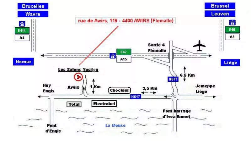 Les Salons Ypsilon sont idéalement situés en ville à Flémalle-Awirs, offrant un accès facile depuis l'autoroute Liège/Namur.