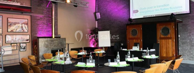 Pour un séminaire plénière de 50 à 300 participants combinant temps de présentation et ateliers en sous-groupes, l'Espace du Centenaire propose une architecture multi-espaces adaptée : amphithéâtre 300 personnes, salle de conférence 50 personnes et hall de réception 300 personnes, avec un espace principal de 680 m² en configuration ouverte. Le vidéoprojecteur est inclus dans la location de base — ce qui évite la ligne « équipement AV » souvent facturée en supplément.