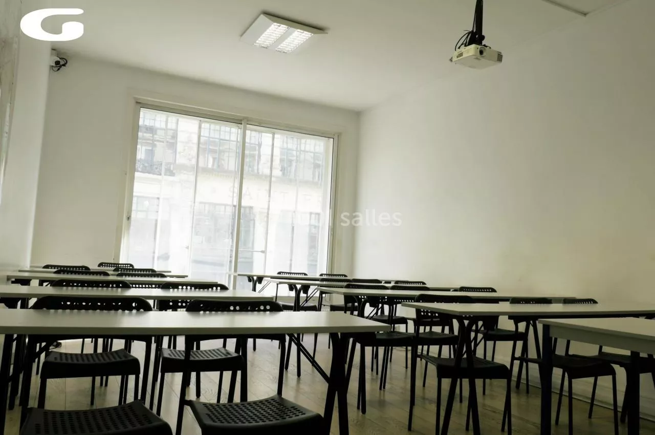 Salle F située au 7 Bis Rue du Louvre pouvant accueillir jusqu’à 28 personnes.