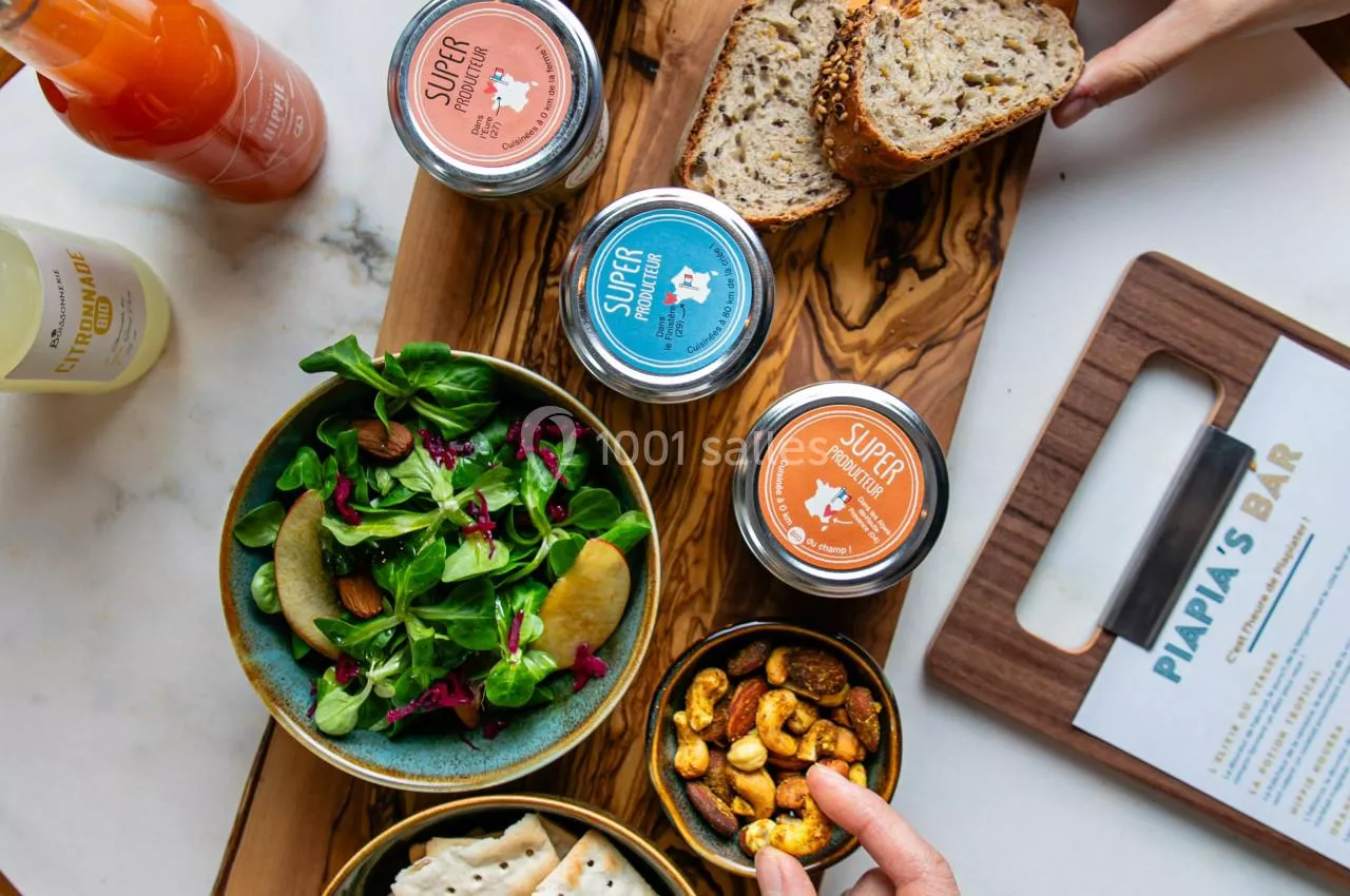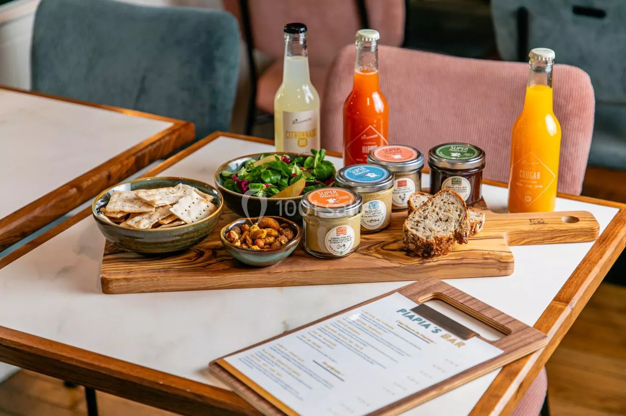 Au bar du PiaPia Hotel, plongez dans l'élégance de Paris avec notre sélection raffinée de mocktails, accompagnés de planches de tapenades bio, véritables délices pour les papilles.