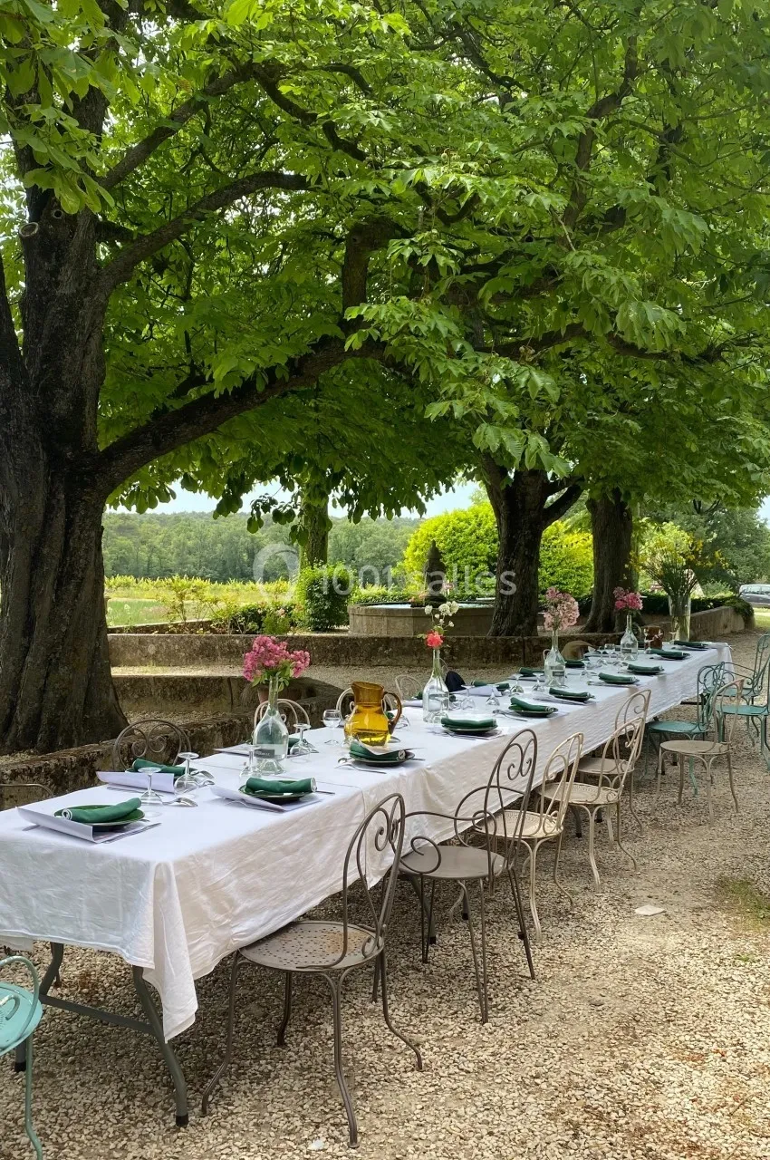 Oui, la cour du château, le parc des platanes et la tente en bambou sont parfaites pour des événements en plein air, offrant un cadre lumineux et naturel.