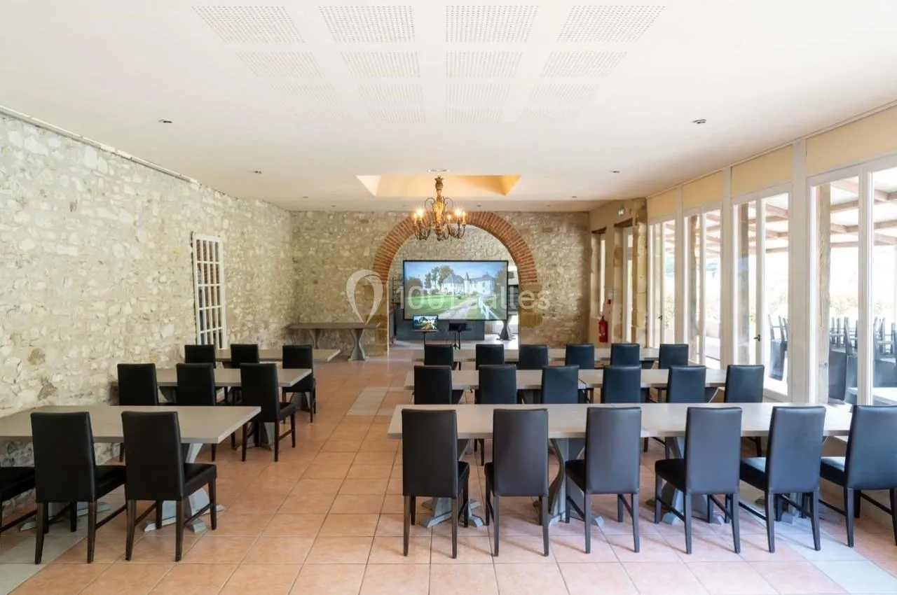 La salle de l'Orangerie peut accueillir jusqu'à 80 personnes en configuration conférence.