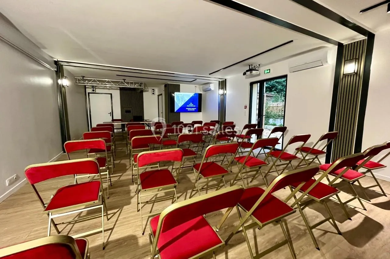Une salle moderne équipée d'installations de qualité, idéale pour des réunions en petit comité (30 à 40 personnes). C'est le choix parfait pour vos événements. La cuisine située à l'étage facilite la préparation des repas. Profitez d'une zone calme pour vos échanges. Une salle secondaire à l'étage offre plus d'espace et une ambiance différente pour vos invités.