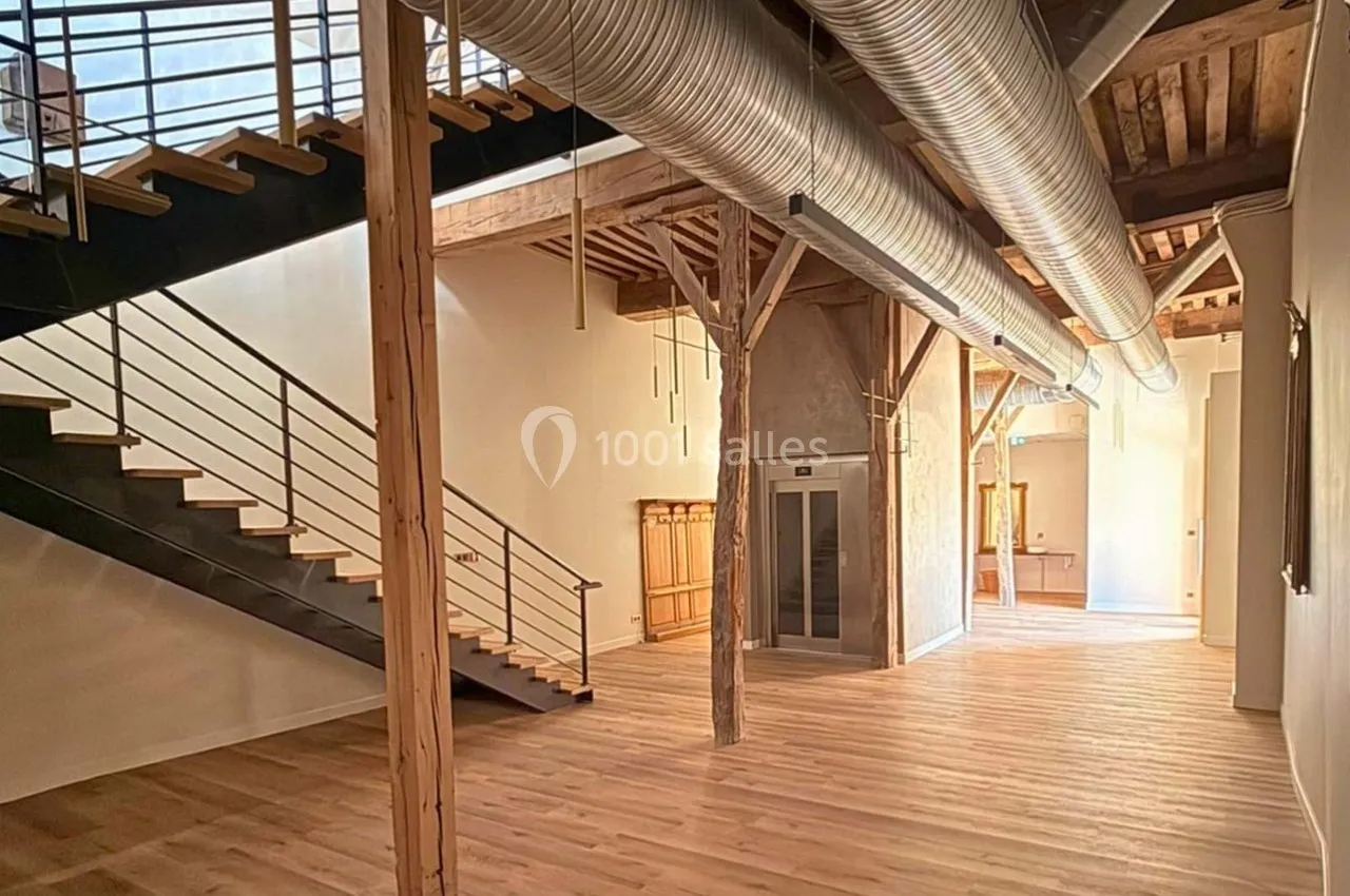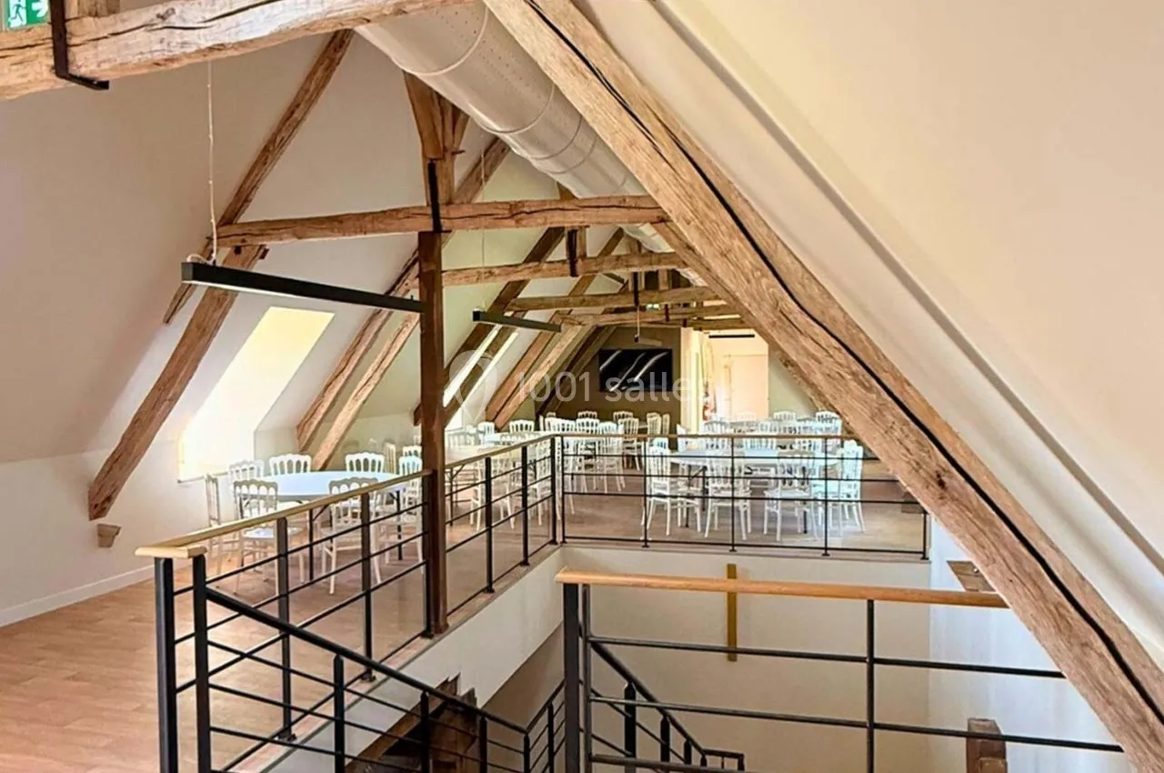 • Salle principale de 193 m² (1er étage) : idéale pour conférences, repas assis, ateliers ou présentations (jusqu’à 150 personnes)