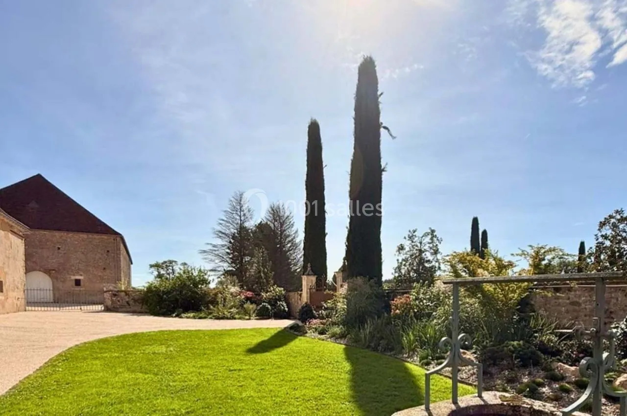 Le domaine dispose de terrasses gravillonnées, d'un jardin paysager et d'allées arborées, parfaits pour des cocktails, ateliers ou activités de cohésion en plein air.