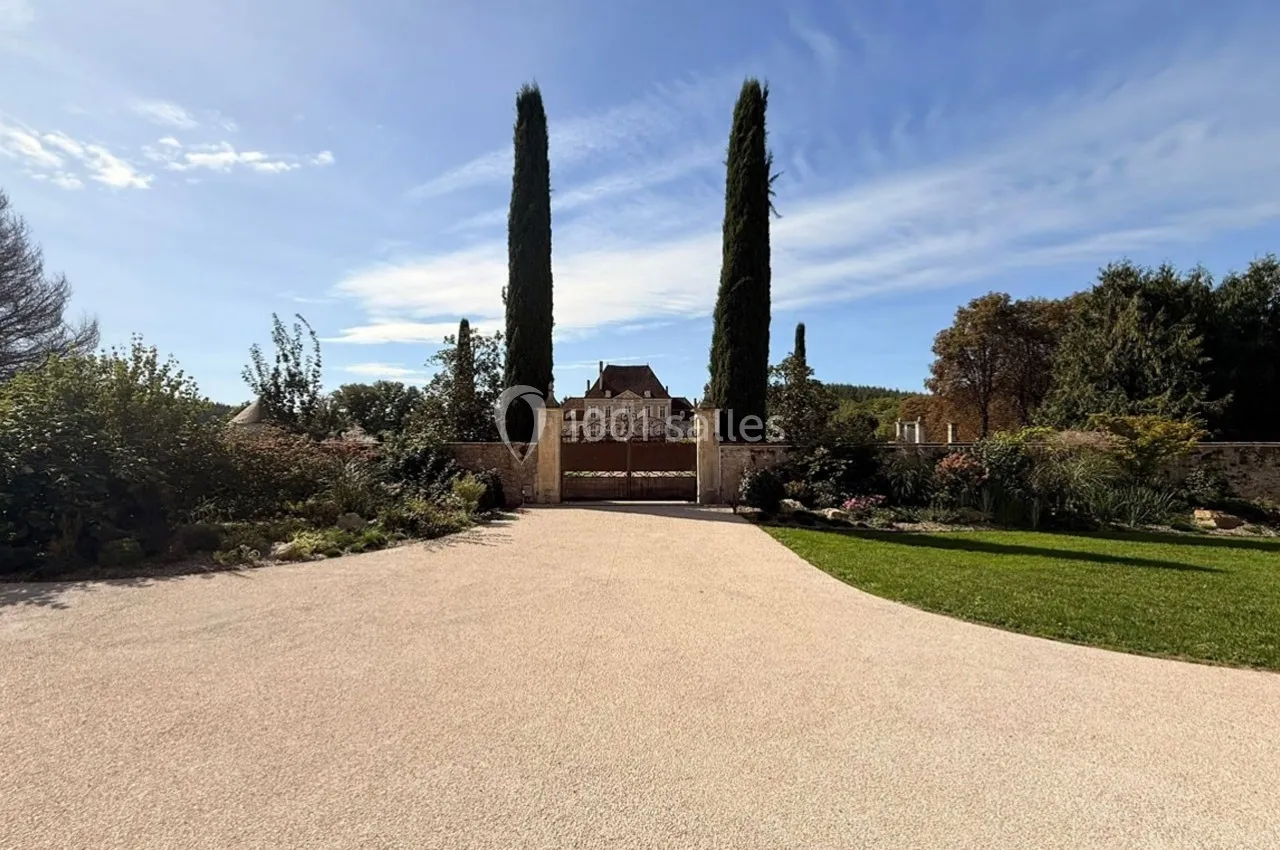 Terrasses gravillonnées, jardins symétriques, allées arborées et vue sur la rivière composent un décor élégant et apaisant, ...parfait pour les cocktails, ateliers en plein air ou activités de cohésion.