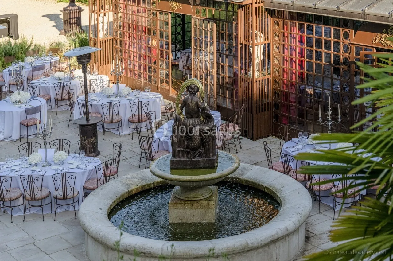 Chaque salle est meublée et chauffée. Le site est exclusif, sans limitation horaire, offrant un confort optimal. Profitez également des espaces extérieurs exceptionnels : Jardins Suspendus, Palmeraie, Roseraie, Closerie ou encore le parc illuminé aux flambeaux.