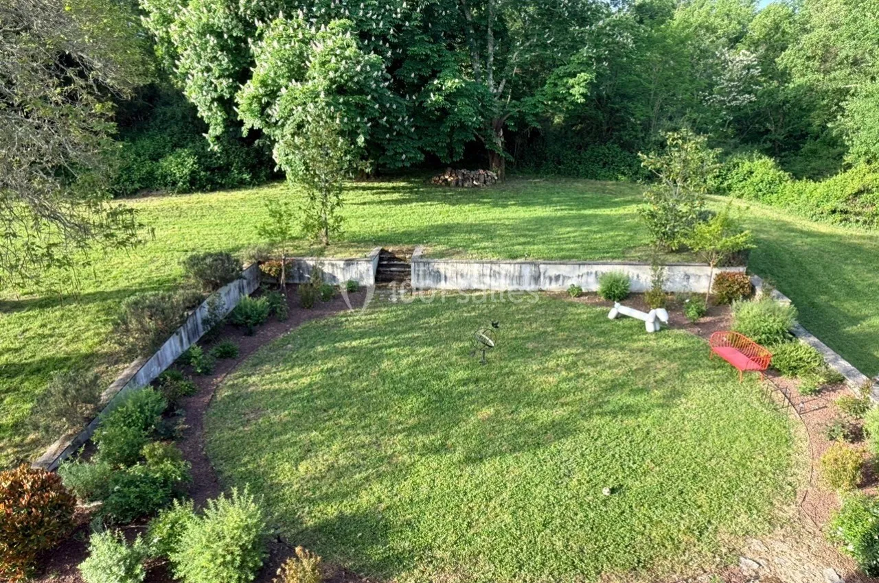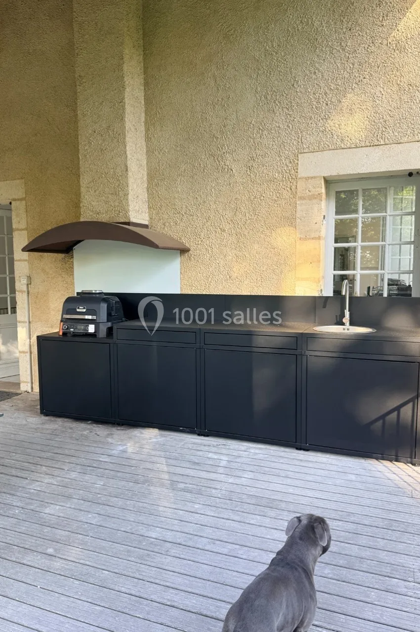 Le domaine propose également une terrasse extérieure de 80 m², avec sol bétonné, située face à l’une des parties du jardin. Elle offre un cadre naturel et élégant pour recevoir, installer un espace lounge, organiser un cocktail, une dégustation ou un temps de convivialité en plein air.
