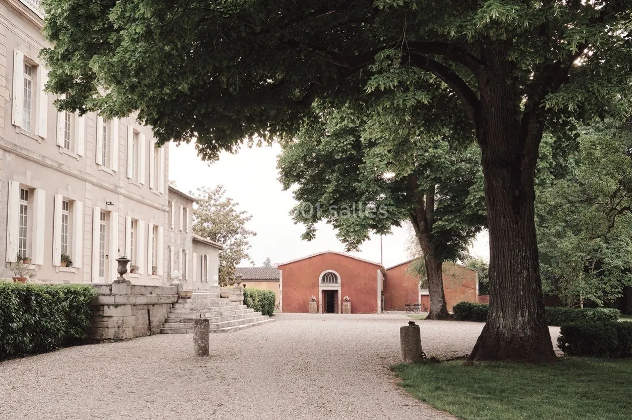 Le Château propose par ailleurs de grands espaces extérieurs (parc arboré, piscine...) ainsi qu'une grande terrasse de 530m2, attenante, à 'Orangerie, idéale pour accueillir repas assis et cocktails en extérieur.