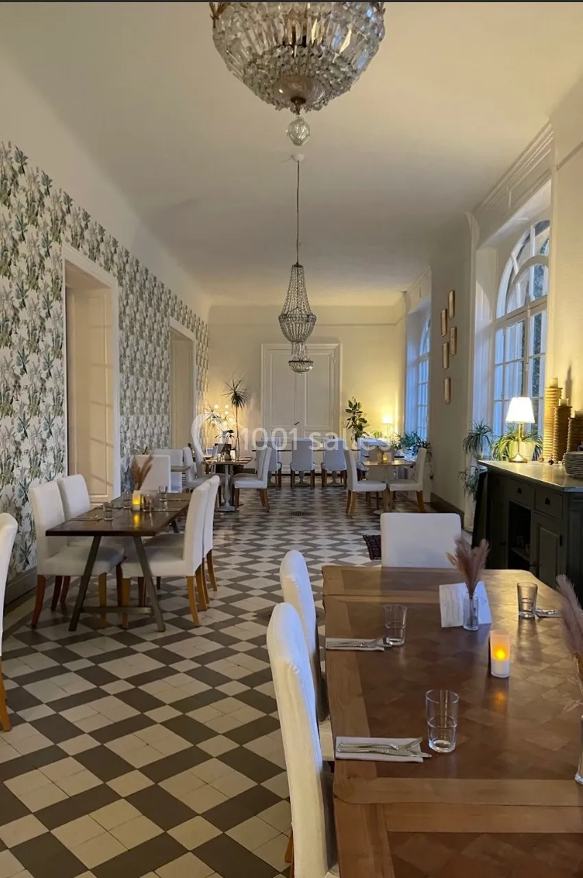 - l'Orangerie et ses salons (80m2), situé dans le château, qui sert de salle de restaurant, idéale pour les repas assis et les cocktails.