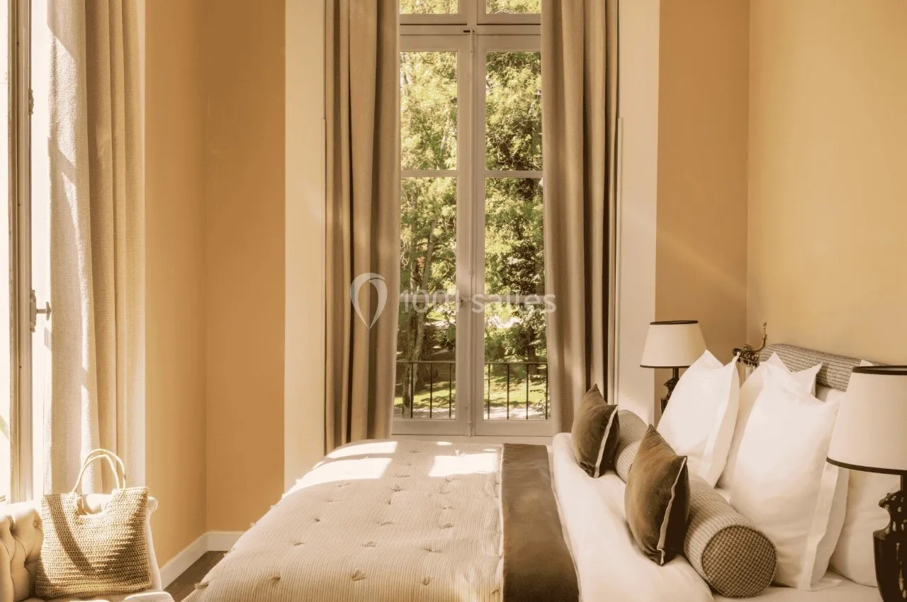 Elles ouvrent chacune sur une terrasse privative, orientée plein Sud avec vue sur le golf et le château : idéale pour des cocktails apéritifs ou des pauses gourmandes.