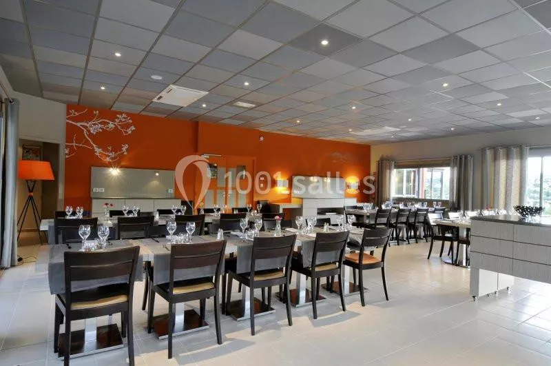 • La salle la Grange est une salle de réunion intégrée dans une ancienne grange complètement rénovée ! Cette salle est d’une dimension de 180 m² et peut accueillir plus de100 personnes en style théâtre. Ses voûtes en pierre et ses poutres en font un lieu authentique idéal pour vos réunions plénières ! Cette salle est modulable en deux parties ou en salle de restauration pour vos soirées de Gala (120 personnes maximum)!
