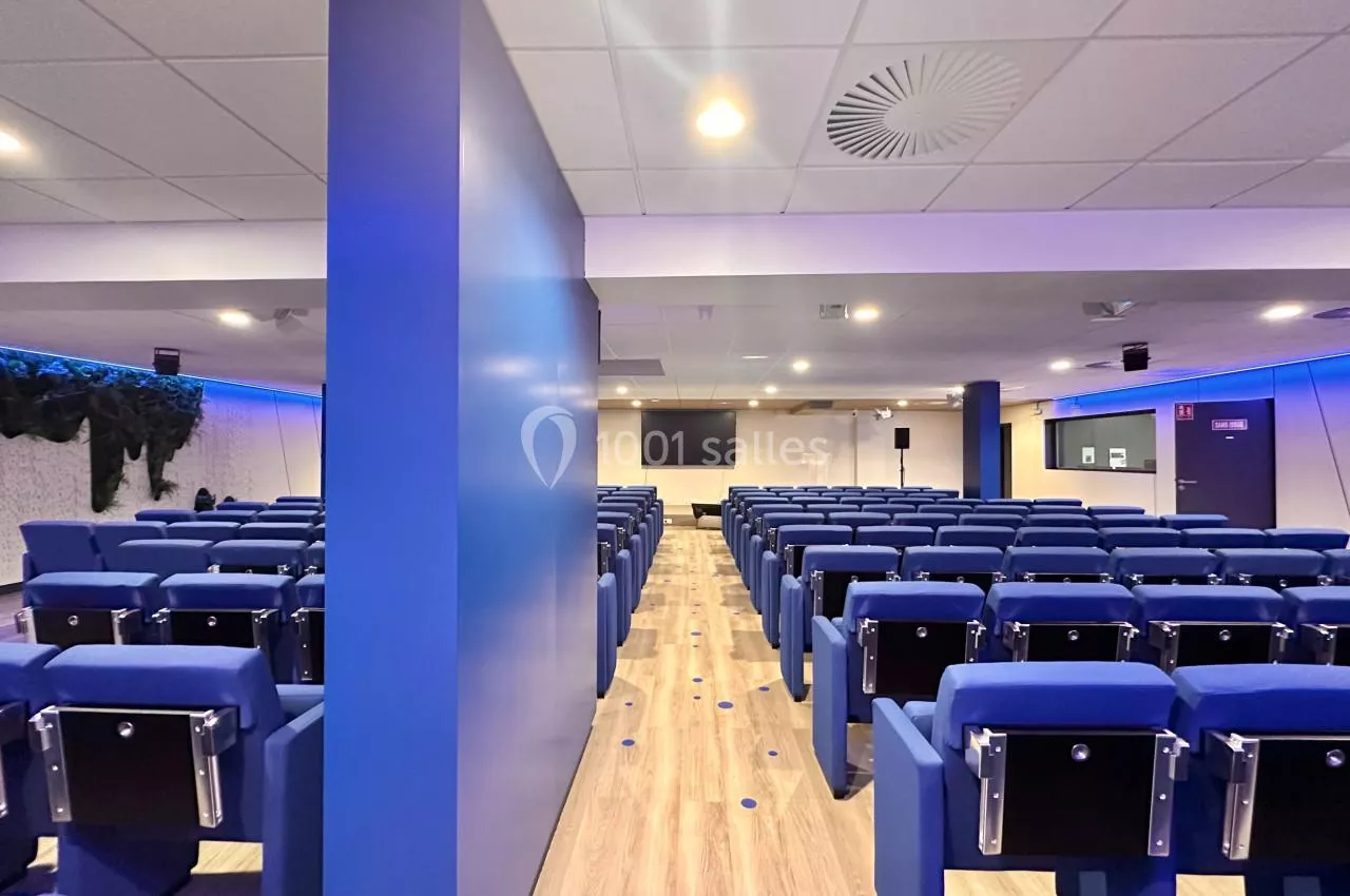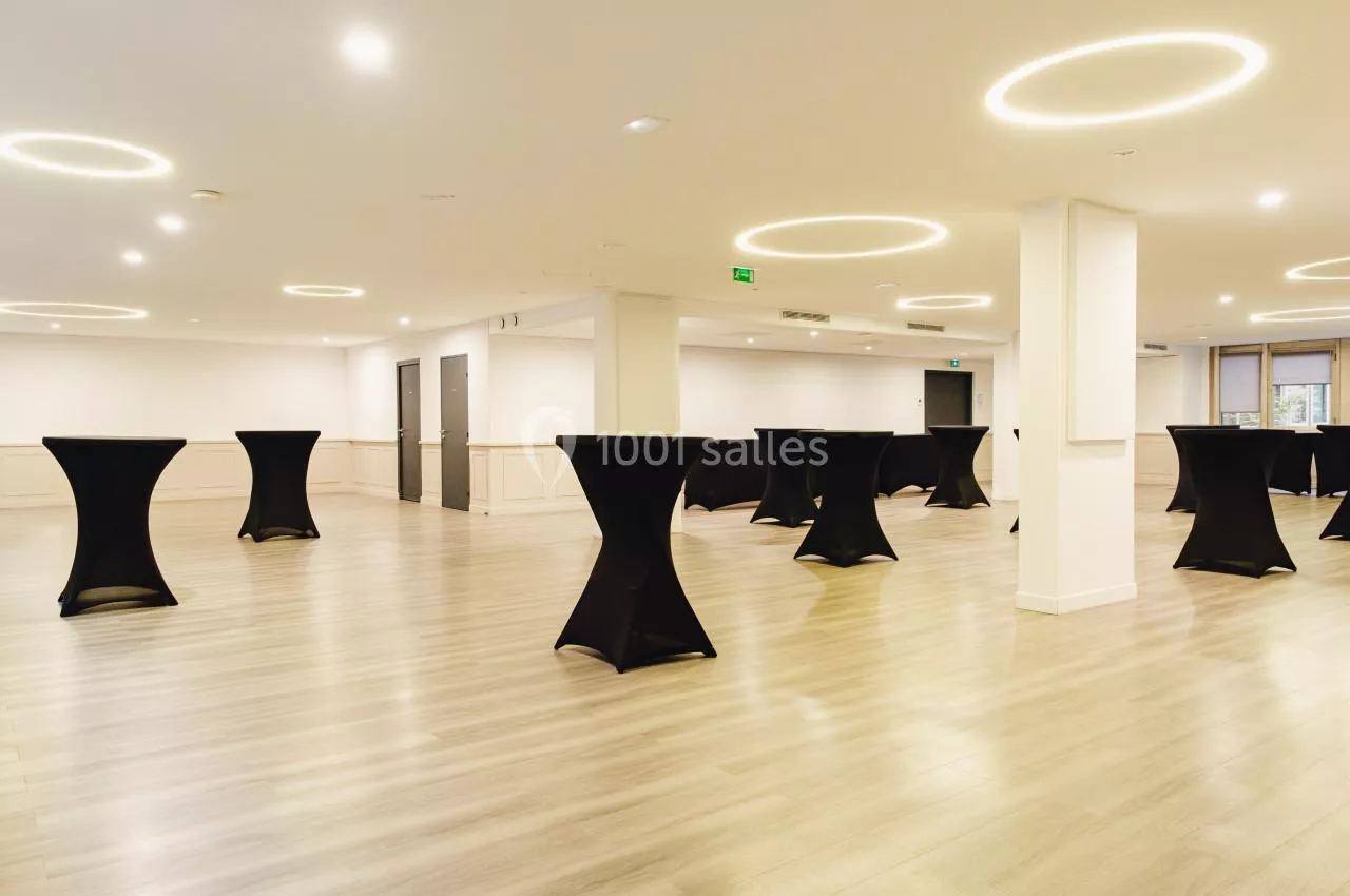 - Une grande salle de réunion modulable de 150 m², attenante à l'espace cocktail. La salle Lumière bénéficie de larges baies donnant sur la terrasse ainsi qu'une grande ouverture lumineuse au plafond.