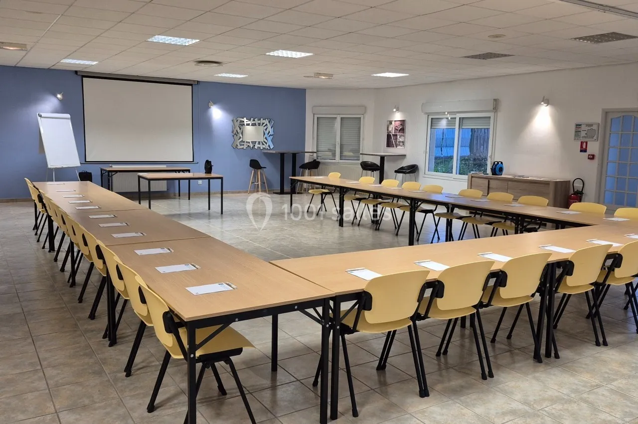 Les espaces de La Haie des Vignes sont conçus pour être modulables, avec des configurations adaptées pour des réunions en U, en classe, ou en conférence, accueillant de 5 à 100 personnes selon la salle choisie.