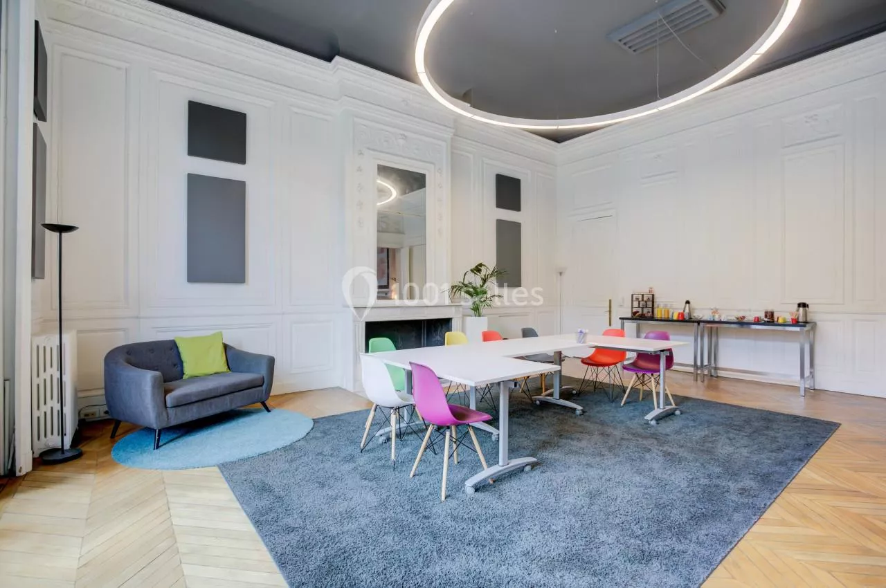 Nous retrouvons dans chaque pièce ...une décoration et une ambiance différente mais aussi tous le matériel nécessaire (paper board, feutre, vidéo projecteur, TV mobile, etc...). Selon le but de votre réservation, nous vous conseillerons un espace dynamique, comme les différents bureaux, ou un espace ressourçant avec ses canapés et fauteuils.