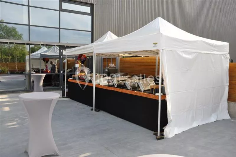 L’équipement de la salle est un investissement financier majeur, il nous semble indispensable d’offrir un matériel de grande qualité, ainsi nous proposons une sonorisation de marque BOSE de très grande qualité, une régie, des jeux de lumière et une technologie d’ensemble à la pointe. La salle est climatisée et dispose de tables rectangulaires ou rondes et de chaises. L’été, nos clients peuvent profiter également d’une terrasse privative de 400 M2 pour y organiser des « garden parties » actuellement très prisées.