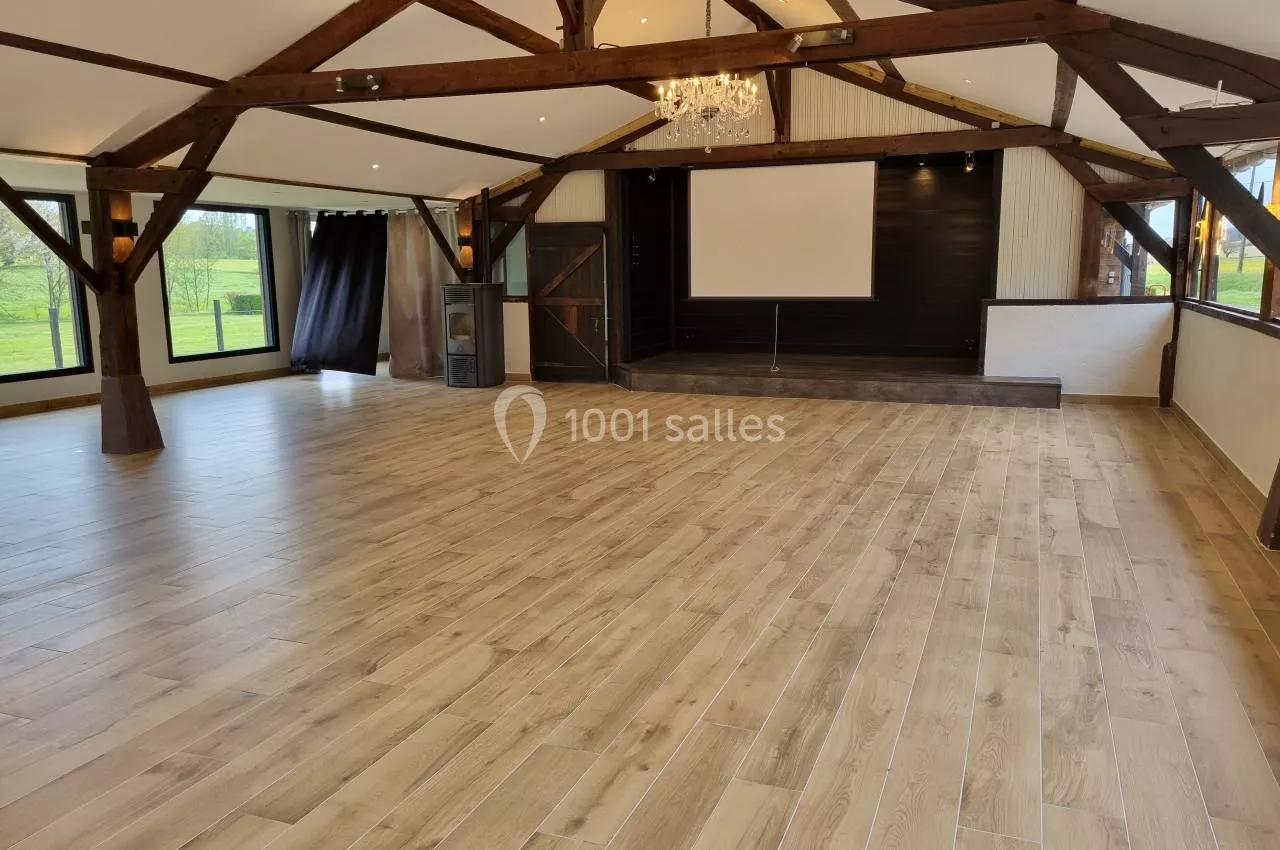 Formule proposée pour 24h00 avec la salle de 100m2 et son gîte a l'étage de 100m2 proposant 15 couchages.