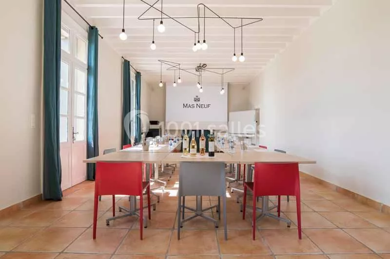Le Mas Neuf propose différentes configurations comme en U, salle de classe, conférence, assis et debout, adaptées à chaque salle pour répondre à vos besoins.