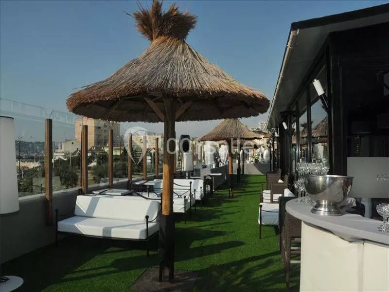 Il existe depuis deux ans, nous avons fait appel à de grands architectes afin de sublimer la salle, le lieu a été entièrement rénové…De la terrasse aménagée vue mer comprenant paillotes et canapés en cuir blanc, aux immenses baies vitrées en passant par le béton ciré au sol. ! Les volumes sont somptueux accentués par la luminosité exceptionnelle du lieu, la lumière entre et se diffuse dans toute la pièce.