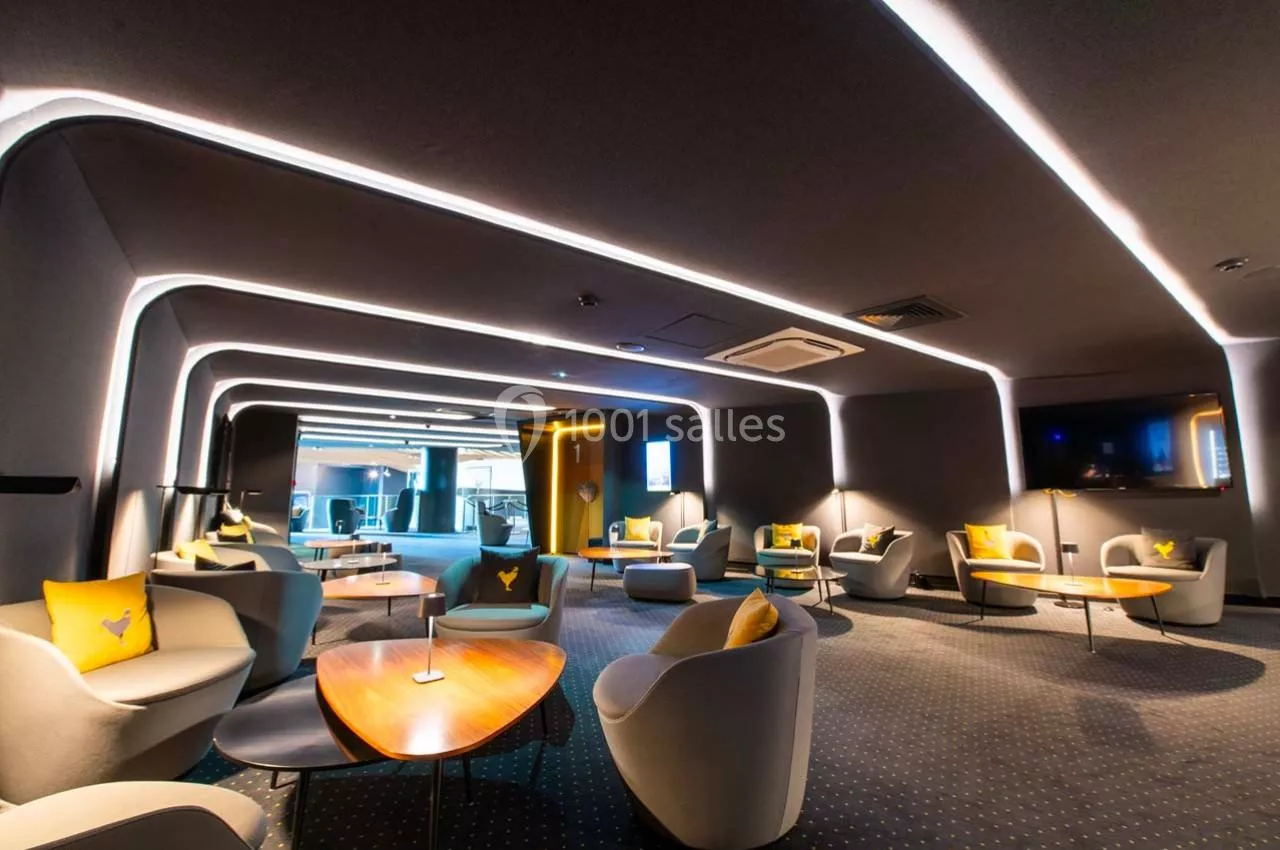 Vous avez aussi la possibilité de louer le Salon VIP attenant à la salle VIP d'un surface de 100 m2 ainsi que notre espace cocktail situé sur la mezzanine, d'u...ne surface de 300 m2 avec pour chacun une entrée privative.